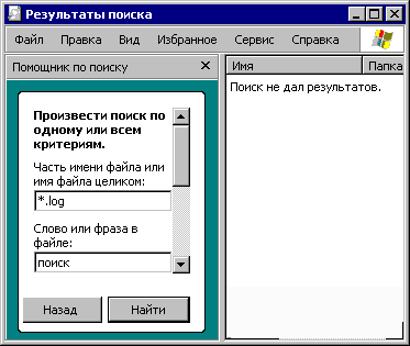 Windows XP не находит некоторые файлы, содержащие заданное вами слово. Программа не будет выполнять поиск в файлах с расширениями log, cpp, h, css и некоторых других, даже если эти файлы содержат слово или фразу, которую вы ищете. Даже если указать шаблон *.log в имени файла, Windows XP все равно не будет находить нужный файл.