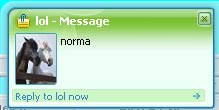 ![]() В таком мини-режиме можно общаться сколько угодно – вам приходит ответ, который показывается в маленьком окошке, вы щелкаете по ссылке Reply now, вводите текст в появившемся поле, отправляете сообщение, снова получаете ответ в маленьком окошке. Очень удобно, если обычное окно для обмена сообщениями кажется слишком большим и привлекает внимание начальника или любопытных коллег.