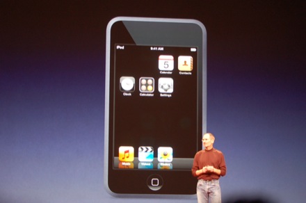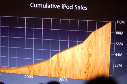 Отсюда: http://live.gizmodo.com/ и http://www.engadget.com/2007/09/05/steve… ![]() Стив Джобс начал свою презентацию вот с этих цифр: 3 000 000 000 продано через iTunes. Это музыкальный магазин номер 1 в 21 стране! 95 000 000 продано тв-шоу (сериалов) Мы начали с 200 000 песен в каталоге, а теперь у нас более 6 000 000 songs в каждом из этих 21-го магазинов. Мы стали продавцом музыки номер три, сразу после Wal-Mart и Best Buy, сразу перед Amazon и Target." Около 550 шоу, продано уже 95 000 000 шоу, 125 000 подкастов." ![]() А теперь рингтоны в iTunes. И новая версия программы этой ночью. Рингтоны вы можете делать сами из любой песни купленной в iTunes. Рингтоны стоят 99 центов. Вы спросите надо ли платить второй раз за преобретенную песню? Когда вы подключаете ваш iPhone к iTunes у вас всплывает колонка, где можно прослушать 30 секунд песни, это и есть рингтон. ![]() Теперь об iPod. Мы продали уже 110 000 000 штук. Сегодня мы обновим КАЖДЫЙ! ![]() У Шаффл новые цвета и Red вариант, деньги от которого пойдут на борьбу с болезнями в Африке. Так же 1 гигабайт и 79 долларов. А теперь переходим к iPod Nano. ![]() ![]() Это абсолютно новый Нано. Более тонкий, 2-х дюймовый экран. Видео есть!!!, фото, разрешение как у iPod video. ![]() 3 новые игры, Vortex, например. Cover Flow тоже! Начинает показывать как там все красиво) ![]() ![]() Посмотрите кто на экране) ![]() А это время жизни. 4 гигабайта в серебрянном цвете за 149 долларов, модель на 8 гигов в разных цветах за 179 уе. ![]() И теперь то, что стало уже iPod classic! (сегодняшний видео) На 160 гигабайт, еще меньше, положите в карман 40 000 песен! Батарея теперь на 40 часов аудио и 7 часов видео! Вторая модель на 80 гигабайт. Сегодня в магазинах за 249 и 349 уе! А теперь то, что многие называли iPod touch! Он здесь! С таким же названием! ![]() Такие же размеры как у iPhone, только тоньше! И у него WI-FI! ![]() 8 мм всего, экран 3,5 дюйма. ![]() Safari в нем. YouTube тоже встроен и Google Maps. ![]() ![]() ![]() ![]() 22 часа аудио и 5 часов видео. Первый продукт с тачскрин не в Америке! Новый iPod Touch. 8 и 16 гигабайт. Цена 299 и 399 долларов! И еще одно! iTunes WI-FI store. ![]() ![]() Четыре конпки: представляем, топ 10, искать и скачать. А теперь демо: это все по вай-фай. Я люблю песни Джона Ленона, я ищу песню, поиск по артисту, альбому, названию песни, нашел и скачал! ![]() WI-FI быстрее 2,5G, так что это очень быстро! Нашел и скачал! Это теперь во всех 22-х странах. Но помимо этого теперь это и на iPhone! Апдейт в ближайшее время и кнопка iTunes появится и там. Мы давно сотрудничаем со Starbucks, что может быть лучше музыки, хорошего кофе и iPod? Теперь вы всегда сможете скачать одним движением то, чтьо играет в кофейне. ![]() ![]() Демонтсрация ![]() На сцене Howard Schultz, основатель Старбакс (к слову так, первый Старбакс в России открылся в Меге в Химках) Мы открываем 7 новых кофеен каждый день. Их уже около 14 000. 50 000 000 посетителей каждый месяц, каждый из них приходит около 18 раз за месяц. T-Mobile устанаваливает во всех кофейнях WI-FI, к 2009-му будет во всех. У нас новые Шаффл, Нано, классика, Тасч и iPhone. Это все равно лучший iPod! И немного о нем. Мы поняли, что все хотят iPhone 8 гигаьай и невероятные продажи подтверждают это. Теперь он 399 долларов, вместо 599! А что на счет 4 гигабайт? А его больше не будет) Только на 8 гигов. Просит подняться всех кто работал над iPhone в Купертино. Они любят музыку! Приглашает на сцену KT Tunstall ![]() Новая песня. "Здорово, что Стив Джобс сделал более веселым покупать музыку, чем красть ее" Стив Джобс благодарит всех. Все закончено. Мы получили новые iPod, более дешевые iPhone, рингтоны, возможность покупать в iTunes б