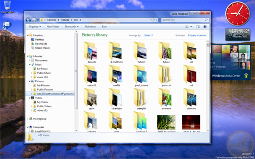 С появлением библиотек исчезла путаница, которая была внесена появлением специальных медиа-библиотек, создаваемых Windows Media Player (WMP) или Windows Media Center (WMC). Предыдущим версиям WMP приходилось сканировать весь жесткий диск на наличие медиа-файлов и добавлять найденные файлы в библиотеку. В Windows 7 необходимость в этой процедуре отпадает ввиду того, что и WMP, и WMC используют одинаковые виртуальные папки. Если добавить в библиотеку новые элементы, то WMP и WMC автоматически их подхватят. Таким образом, пользователям не нужно управлять несколькими библиотеками, предназначенными, по сути, для одних и тех же целей.