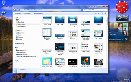 Если вы еще не осознали, насколько удобен такой поиск, то знайте, что функция предполагает прямое взаимодействие с файлом. То есть двойной щелчок на файле откроет этот файл в ассоциированном с ним приложением или, к примеру, позволит установить изображение в качестве обоев рабочего стола. Реализована эта функция при помощи открытых стандартов OpenSearch и RSS2, поэтому для разработчиков не составит труда создать собственные провайдеры поиска для Windows 7. К слову сказать, на текущий момент доступны провайдеры для поиска по сайту Microsoft Support, Flickr, Youtube, Twitter, Yahoo!, MSN, Google News.