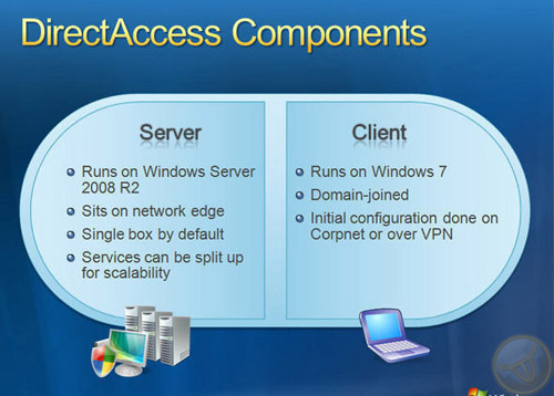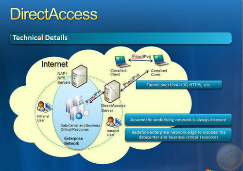 Как я говорил в самом начале нашей статьи, работать вне стен офиса год от года становится проще и удобнее. Функция DirectAccess в Windows 7 and Windows Server 2008 R2 упрощает работу мобильных сотрудников, обеспечивая простое и безопасное подключение к корпоративной сети отовсюду, где есть подключение к Интернету , без необходимости использовать VPN. Таким образом, если сетевой администратор активировал DirectAccess, мобильные сотрудники смогут в любой момент получить доступ к общим файлам и папкам сети, всем внутренним сайтам и всем LoB-приложениям (абб. от Line-of-Business).